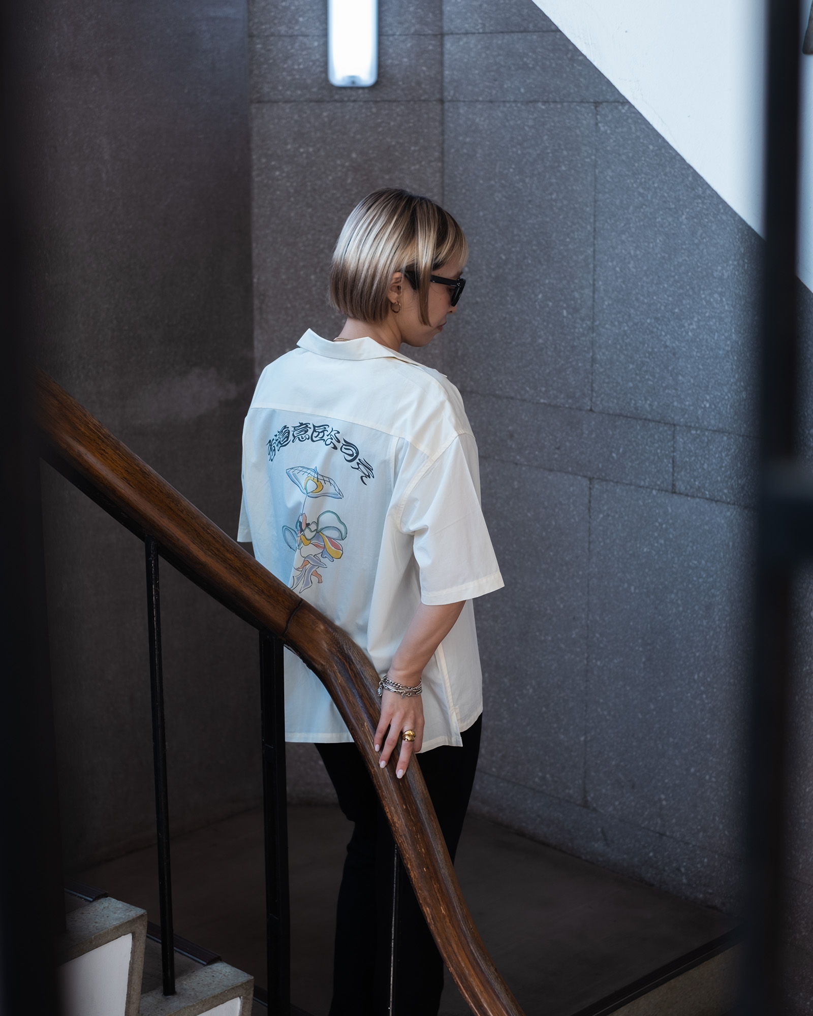 ■ The color of the product in the image may differ from the actual item due to lighting or angle. Additionally, the actual size may vary slightly from the displayed size, so please be aware of this in advance.■ When wearing or handling the product, be sure to check the care label and attention tags attached.■ When using an iron, always use a pressing cloth. Do not iron over the printed areas, as they may melt.